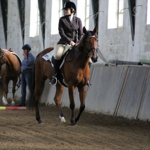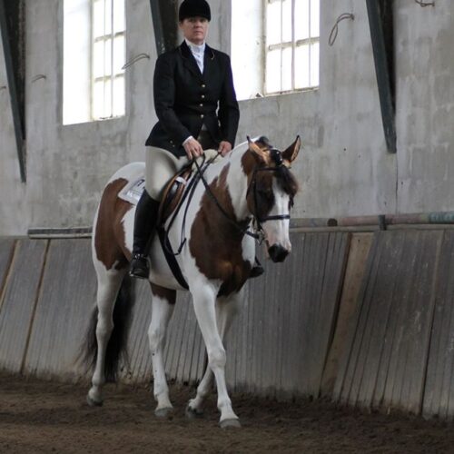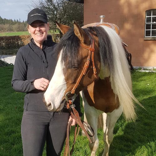 Majken ejer en blanding af Oldenborg og knapstrupper som hun er i gang med at omskole fra jagt/spring/dressur til westernriding grundet hesten fik en skade og ikke kan holde til spring/dressur længere.